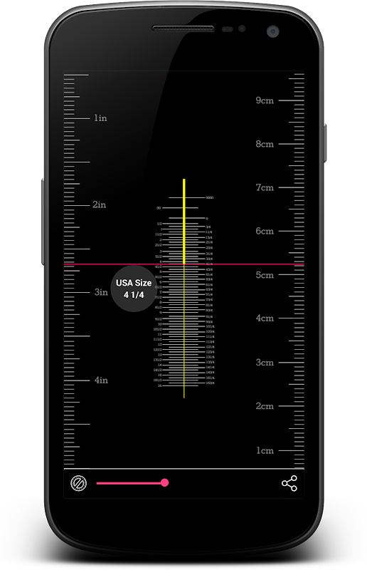 3. Kemudian gunakan carta aplikasi untuk mengukur saiz cincin anda. Untuk itu perlu bermula dengan meletakkan satu hujung jalur di bahagian paling atas skrin.
