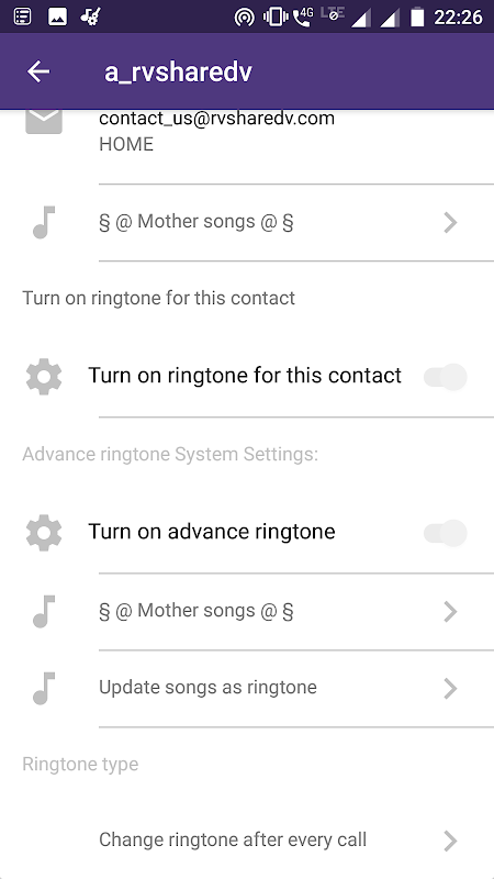 -> Ubah setelah setiap panggilan: Nada dering berubah secara automatik setelah setiap panggilan (Bermula dari Android 9, fitur ini tidak akan berfungsi untuk hubungan tertentu kerana dasar privasi yang ketat oleh Google play store, tetapi masih ciri ini berfungsi untuk kenalan lalai anda).
