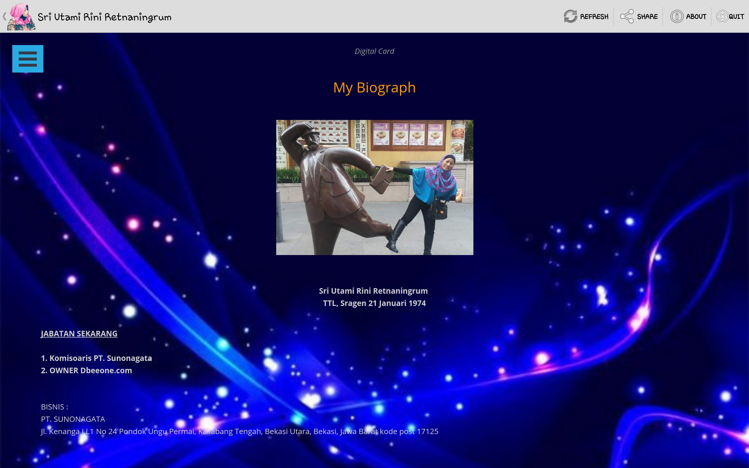 Merupakan digital Card berisi Deskripsi singkat dari Sri Utami Rini Retnaningrum (Ririn)