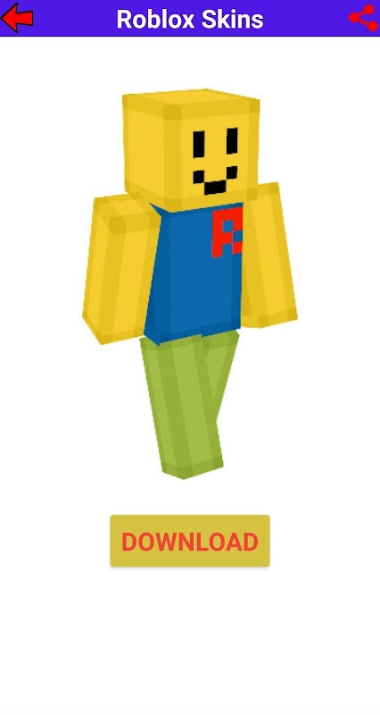 Setiap kulit boleh anda muat turun secara percuma hanya dengan satu sentuhan butang! Roblox Skins For Minecraft PE mudah digunakan: