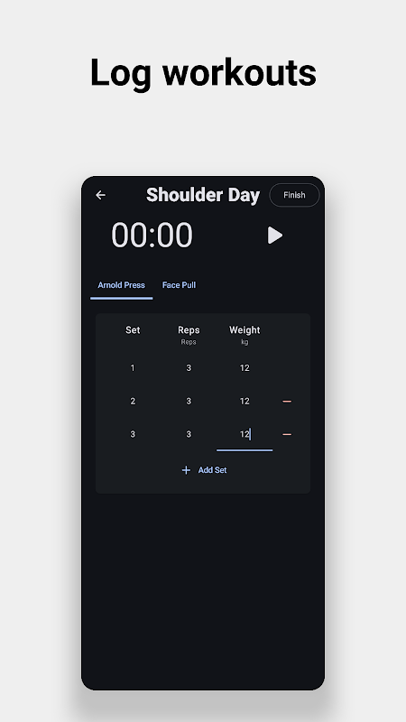 Kekal bermotivasi dengan penjejak kemajuan yang jelas yang menunjukkan sejauh mana anda telah mencapai. Semak latihan sebelumnya, bandingkan prestasi dan jejaki peningkatan kekuatan, ulangan dan berat badan supaya setiap sesi membawa anda lebih dekat kepada matlamat anda.