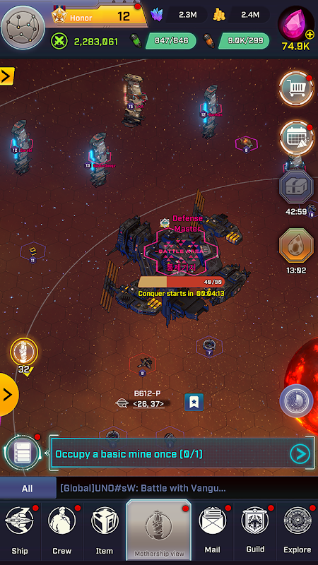 Dalam ‘Star Gye Conquest’, anda boleh terlibat dalam pertempuran berskala besar masa nyata yang menarik dengan sehingga 100 atau lebih ahli serikat. Nikmati perang MMO ruang masa nyata dengan pemain dari seluruh dunia! Menakluki alam semesta dan anda boleh mendapat cukai atas penaklukan!