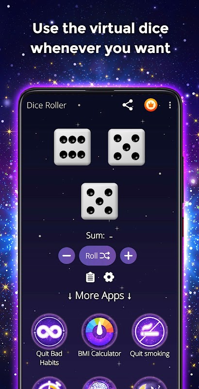 Menggunakan aplikasi ini sangat mudah, anda hanya perlu menunjukkan bilangan dadu yang ingin anda gunakan dan klik pada butang. Anda boleh menggulung sehingga 6 dadu.