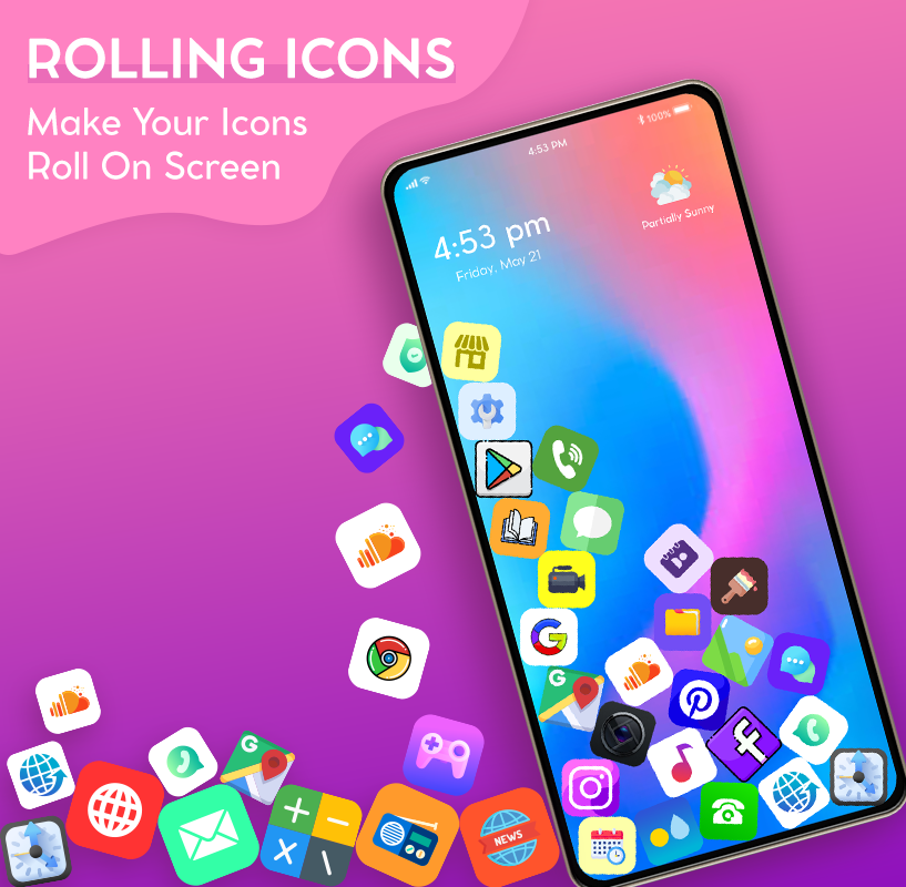 Photo launcher & rolling icon app has following features to roll icons with gravity movement: