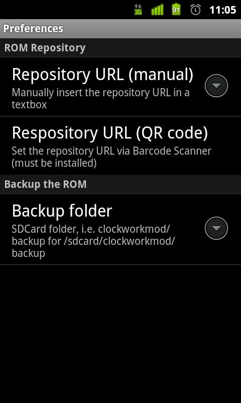 It has a full support for the most common recovery actions (cache/data wipe, apply zip update, backup etc). To set the repository URL you just need a click (you can always set it manually). *NEW* A list of the actual repositories is available in the settings menu - share yours sending anonymous data!