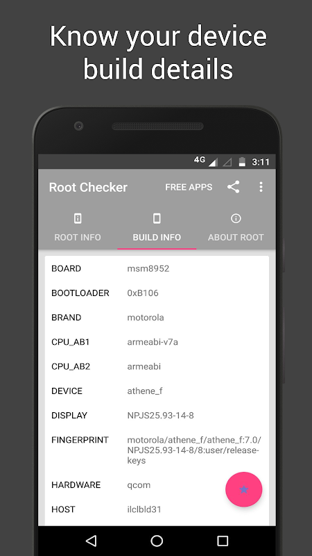 In addition to root/super user checking and busy box, this root checking app also gives the following build information about your android device -