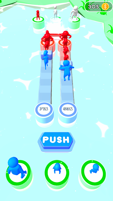 Royal Pushers ialah permainan klik di mana anda perlu mengetuk lebih cepat untuk menolak skuad musuh ke arah air. Anda perlu terus meningkatkan skuad anda untuk memenuhi kekuatan skuad musuh anda atau mereka akan melalui anda ke dalam air.