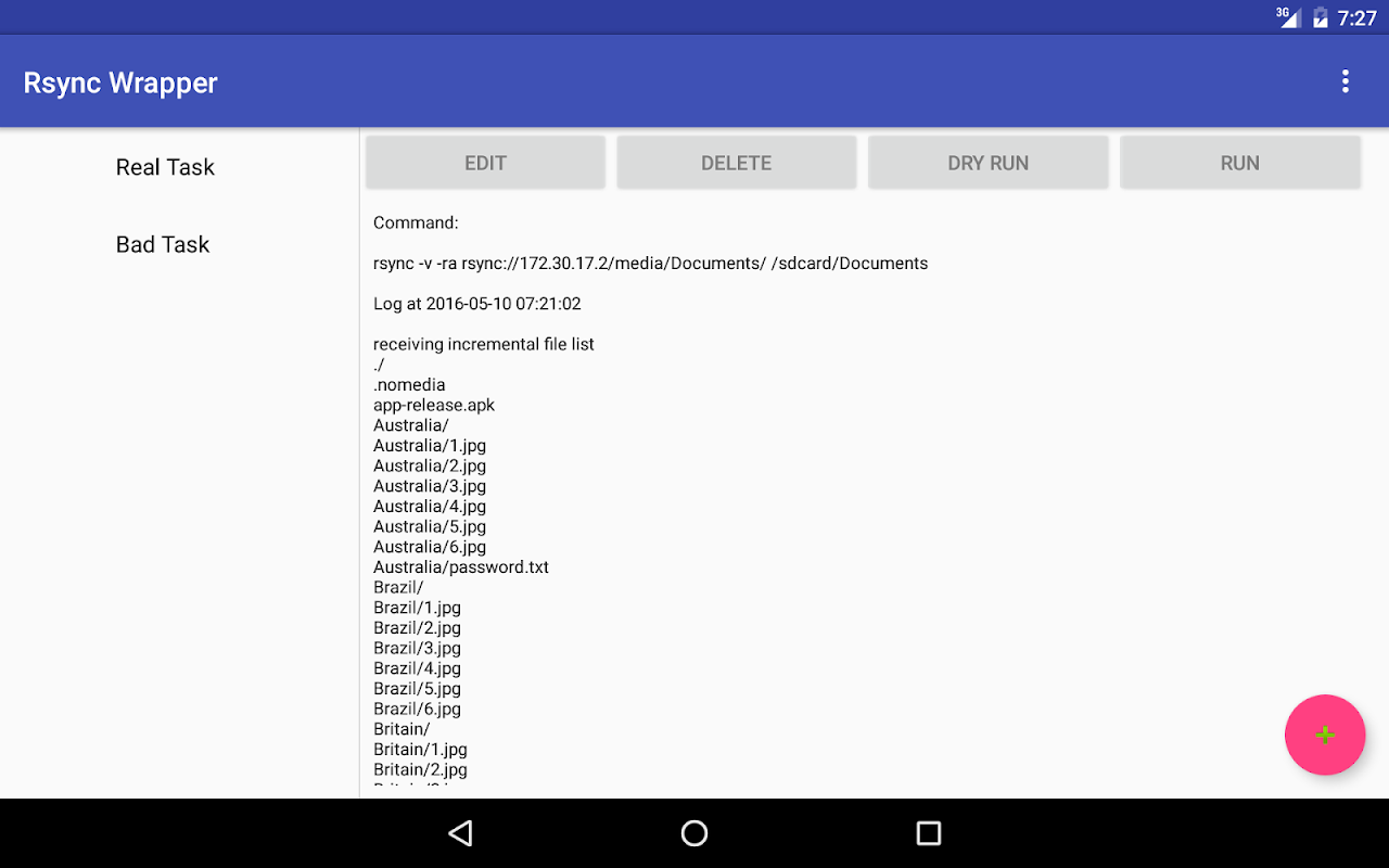 A app wrapper untuk pelanggan rsync yang terkenal, yang disusun oleh Android NDK.