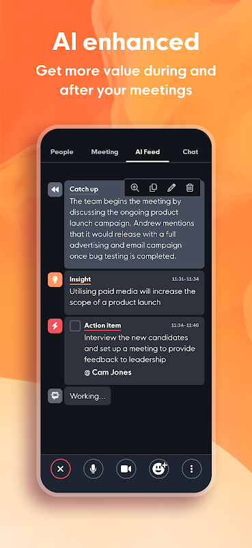 Alami mesyuarat yang lebih bijak: Mesyuarat Rumi memberikan cerapan masa nyata dan item tindakan—tiada lagi mengambil nota! Selepas mesyuarat, ringkasan mesyuarat yang teratur dihantar terus ke peti masuk anda.
