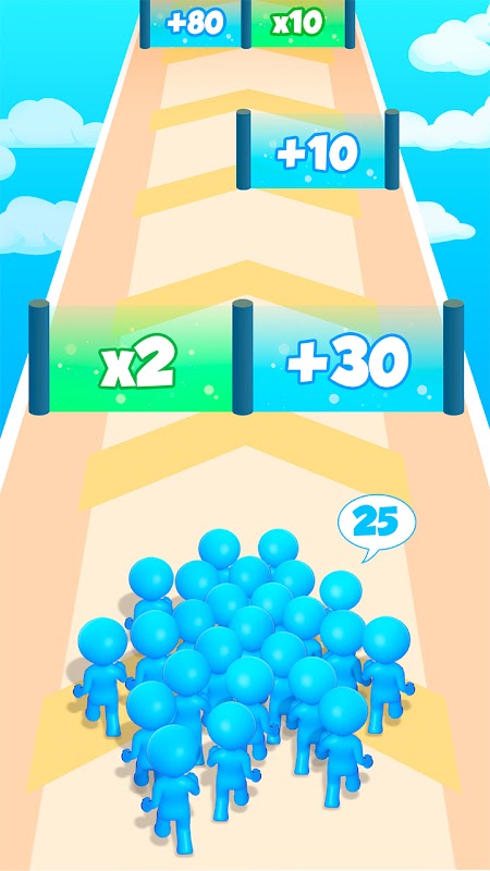 Multiple levels with increasing difficulty. You'll face many challenges, but don't worry: your crowd of runners can clash with the most painful of enemies.