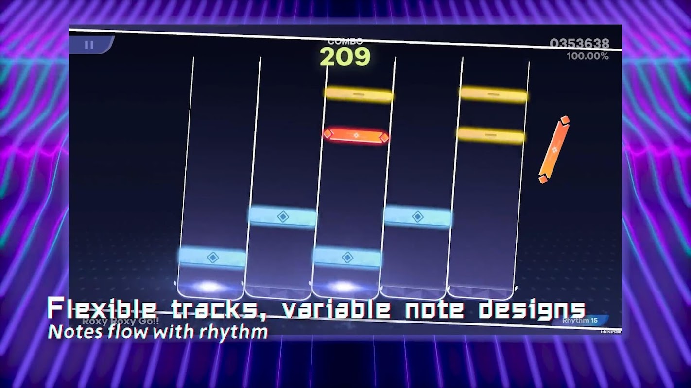 During your play, you should make use of your sight and sense of rhythm to precisely tap, hold and flick the notes that fall along the track in order to get higher scores, tokens and unlock the main story. Specially, the track is designed to freely move, rotate, and zoom in and out within the 3D space. There are five different types of notes in the game: