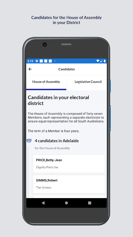 - List the House of Assembly candidates applicable to your electoral district