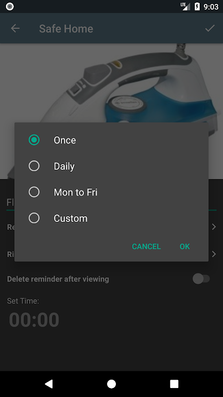 Snap a quick picture of your appliance and set a timer to remind you. Get reminded at specific time to turn off those appliances that are dangerous if left unattended.
