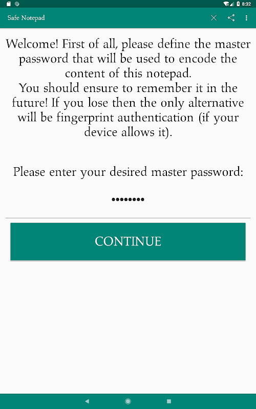 - Kandungan notepad ini akan disimpan disulitkan dengan kata laluan yang anda inginkan.