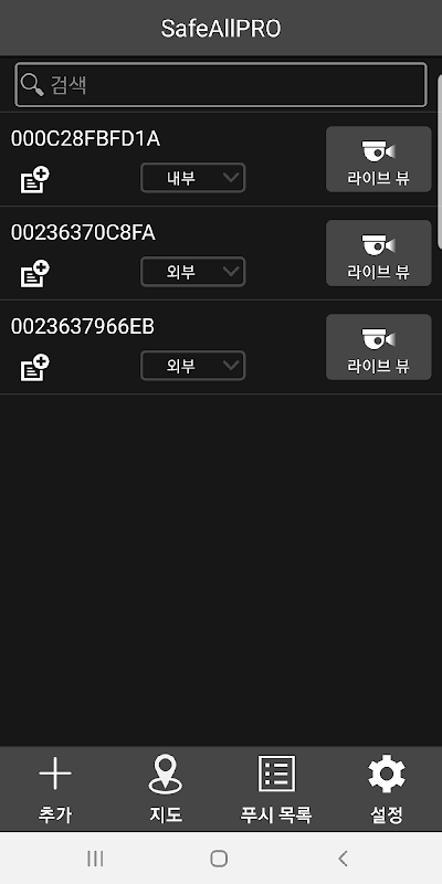 SafeAllPRO DVR 장비와 연동되는 모바일 앱입니다.