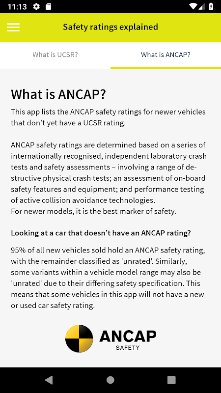 Apl SafeCars menggunakan data Penilaian Keselamatan Mobil Digunakan untuk menunjukkan keselamatan kenderaan. Penarafan UCSR dianugerahkan berdasarkan keupayaan model kereta untuk memastikan penumpang selamat dalam kemalangan dunia sebenar.
