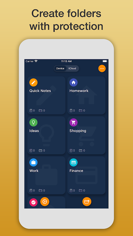 Simpan nota peribadi 100% selamat. Kunci folder dengan kod laluan & keselamatan biometrik