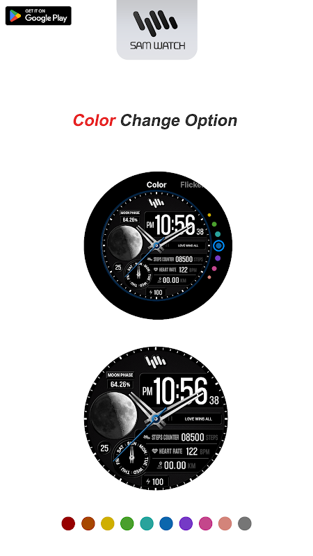 *Apl telefon pintar ialah apl tambahan yang menyokong muat turun apl pada peranti Watchface. Ia mungkin berbeza daripada tangkapan skrin muka jam apl telefon pintar dan tangkapan skrin muka jam yang sebenarnya dimuat turun. Kebanyakan produk aplikasi Watchface SamWatch termasuk aplikasi untuk telefon pintar.