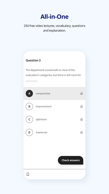 Anda boleh mengalami peningkatan markah yang lebih pantas melalui kursus pengajian peribadi yang terdiri daripada semua soalan dan kuliah yang diperlukan, tolak masalah yang tidak perlu.