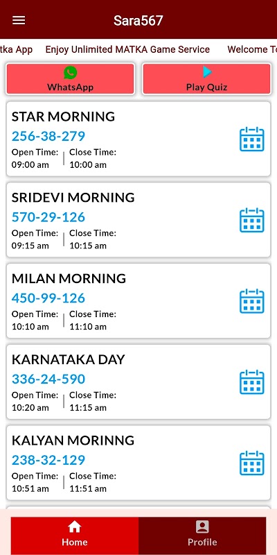 Sara 567 Matka Play Online Matka is Online Matka App! It provides all Matka results, including Kalyan, Time Bazar, Milan Day, Milan Night, Rajdhani Night, Kalyan Night, and Main Bazar.