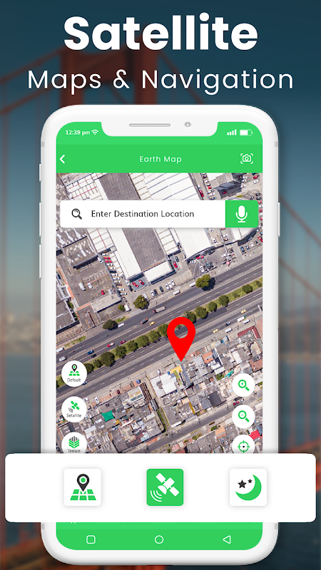 Paparan Satelit - Apl Peta dunia GPS mempunyai ciri Perkongsian Lokasi Semasa dengan orang lain. Anda hanya boleh menyebut Lokasi anda dalam pilihan butang tetikus bar carian dan navigasi ke Lokasi yang anda inginkan. anda boleh berkongsi lokasi semasa anda dengan orang yang anda sayangi.