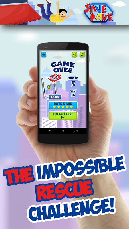 Untuk menyelamatkan dia, kaedah-kaedah yang mudah: sengetkan telefon anda untuk membantu Dave melantun di kajang dan mengelakkan kematian tragis mencanak!