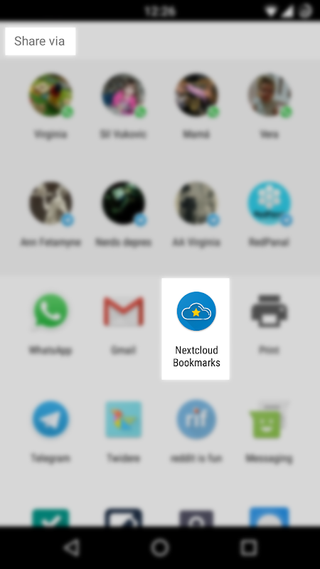 Save links to your Nextcloud Bookmarks via the "share" menu.