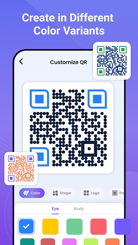 Pilihan Penyesuaian Anda boleh memperibadikan kod QR dengan warna, bentuk, logo dan bingkai.
