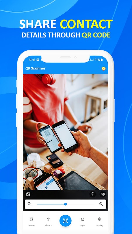 QR code reader enables you to create your own QR codes of various information or data such as your Wi-Fi QR code, your social media link QR code, there are many options for creating personalize QR code, moreover you can change the color style of QR code as you want.