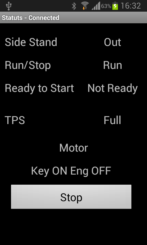 Ia memerlukan antara muka Bluetooth/Wifi ELM327 dan kit sambungan ke soket diagnostik 3pin Tyco dan kepada bekalan kuasa 12V motosikal.
