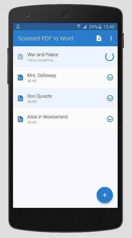 Scanned documents are not easy to convert with regular converters. They require special OCR technology for recognizing scanned images and data. Use this scanned PDF to Word converter to extract data trapped inside an image based PDFs. Open the app and select your PDF document. The conversion will start automatically. The newly converted file will then be downloaded to your Android device.