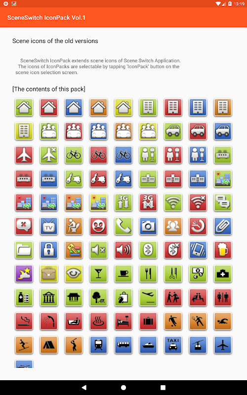 The SceneSwitch iconpack memanjangkan ikon pemandangan yang boleh digunakan dengan 'Scene Tukar' android aplikasi dan 'Scene Tukar Pro.