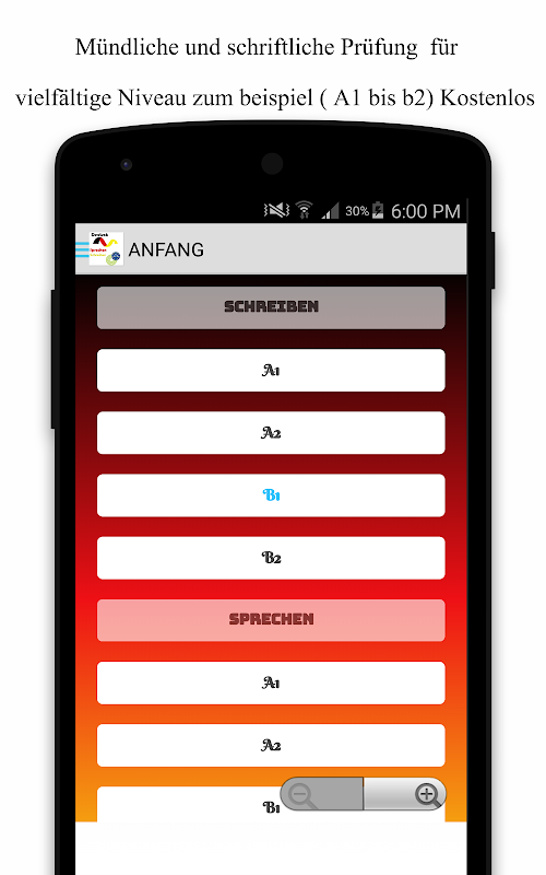 Dalam aplikasi ini anda akan mendapat soalan Jerman model bahasa dan ujian untuk semua peringkat tawaran (dari A1 hingga b1).