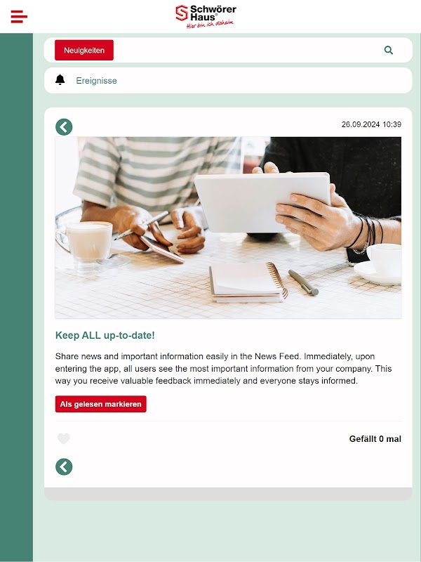 Ketahui tentang semua berita dan maklumat penting daripada syarikat kami dengan aplikasi pekerja Schwörer baharu SSchwererInside - pada bila-bila masa dan dengan mudah pada telefon pintar anda.