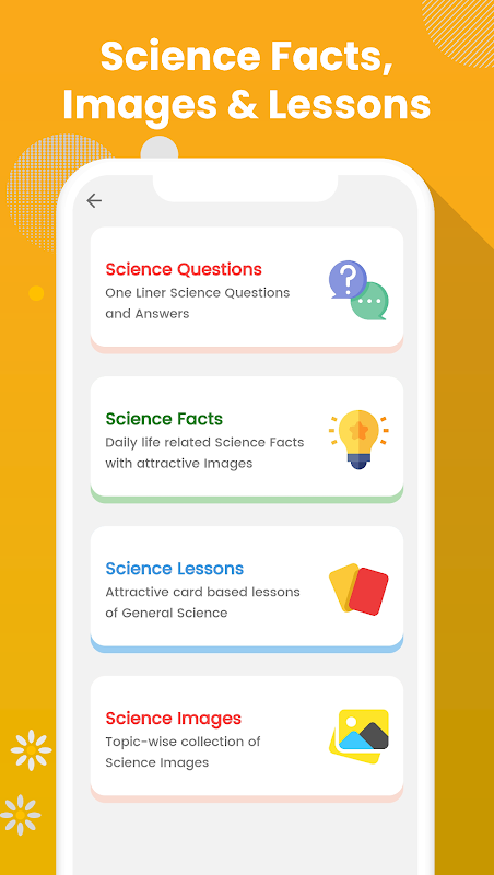 Apl Jawapan Soalan Sains menyediakan koleksi soalan sains terpilih untuk peperiksaan kompetitif dan pengetahuan am. Beribu-ribu soalan Sains terpilih dengan jawapan berkaitan teori saintifik dan kehidupan harian disediakan di sini. Soalan Sains ini sangat berguna untuk peperiksaan kompetitif serta untuk meningkatkan asas Sains.