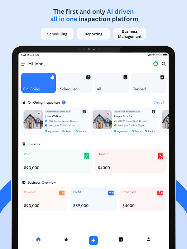 Penyelesaian perniagaan pemeriksa rumah yang lengkap yang menyepadukan perakaunan, invois, pemetaan, penjadualan, kontrak, dan sistem penulisan laporan pemeriksaan yang paling mudah, serba boleh dan teliti di pasaran. Pemeriksaan Skop dicipta oleh pemeriksa rumah untuk pemeriksa rumah.