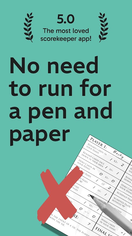 Pencatat skor yang mudah digunakan untuk semua permainan kecil atau aktivitas lainnya. Sangat mudah untuk melacak skor permainan kartu, permainan papan, apa pun yang Anda mainkan. Sepenuhnya bebas iklan.