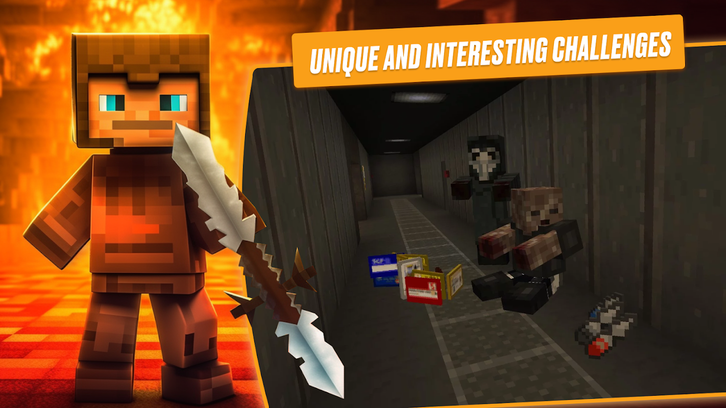 SCP Addon untuk Minecraft PE ialah aplikasi mendebarkan yang mengubah dunia blok biasa menjadi pengembaraan seram sebenar. Mod SCP untuk Minecraft SCP menambah permainan daripada tambahan Mojang AB dengan elemen amp dan mewujudkan suasana ketegangan dan ketakutan yang memaksa anda untuk sentiasa menggunakan lari dan bersembunyi daripada slenderman. Mengekalkan kelangsungan hidup anda dalam proses, raksasa yang berbeza akan muncul dalam perjalanan anda. Tugas anda adalah untuk menguasai kraf sumber yang diperlukan dan fikirkan cara untuk melarikan diri daripada Peta Seram Minecraft MCPE Batuan Dasar dengan lebih cekap untuk menyelamatkan nyawa anda dan melindungi alam semesta Mincraft.