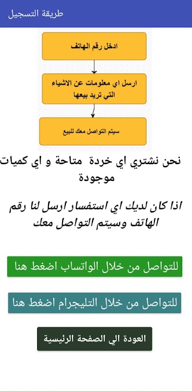 Aplikasi kami menyediakan cara untuk berkomunikasi dengan kami untuk menjual, membeli dan mengaut keuntungan daripada sekerap, barang terpakai dan barang lama