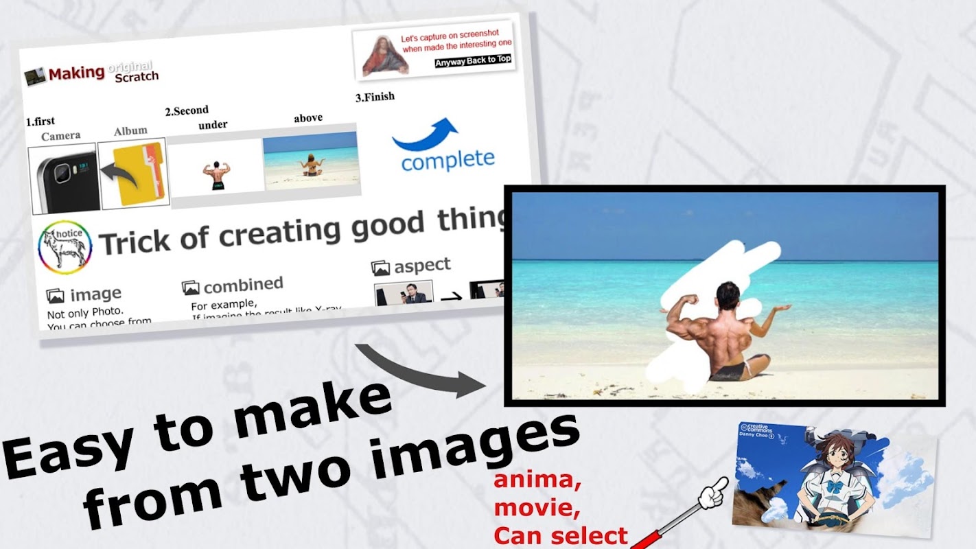 Boleh membuat kad gores unik dari dua imej kegemaran anda.