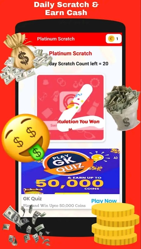Peroleh wang tunai sebenar untuk menyelesaikan tugas mudah dengan Dolar Peti Masuk Gores. Buat wang untuk melengkapkan Daftar Masuk Harian, Kad Gores, Rujuk rakan, ini adalah aplikasi Swag bucks yang mudah