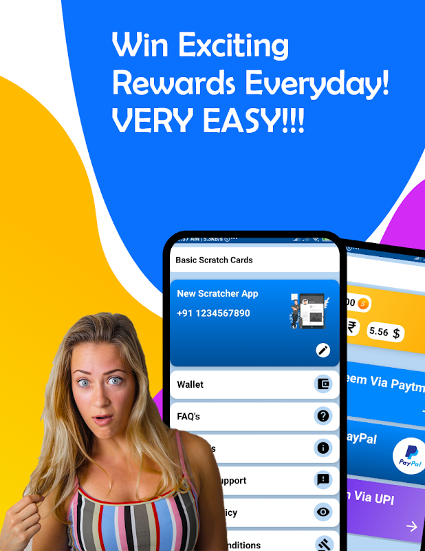 The scratch and win app offer you many free scratch cards. 120 Free cards to scratch and earn EVERY DAY! You can scratch all of them, try your luck and win points. You can scratch and win Paytm cash very easily. The app is too simple to use, and we have designed the user interface in a way that anyone can use it with ease. The use of bright colors with the proper color combination is soothing to the eyes. We promise you will love the 'scratch to win' application's design and would want to stay longer.