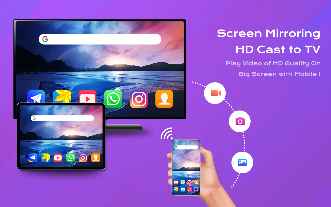 Screen Mirroring is a tool, which allows you to mirror your smartphone on TV screen with high quality. You can easily access all of your games, photos, videos and other application on a big screen using Mirror Screen to TV App.