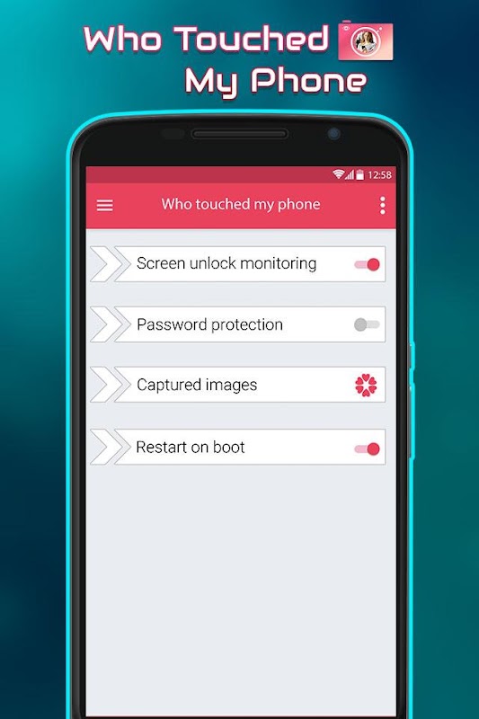 Application allows you to find out, who took your phone without your permission. Being activated, it will take a photo of anybody, who unlocks your phone.