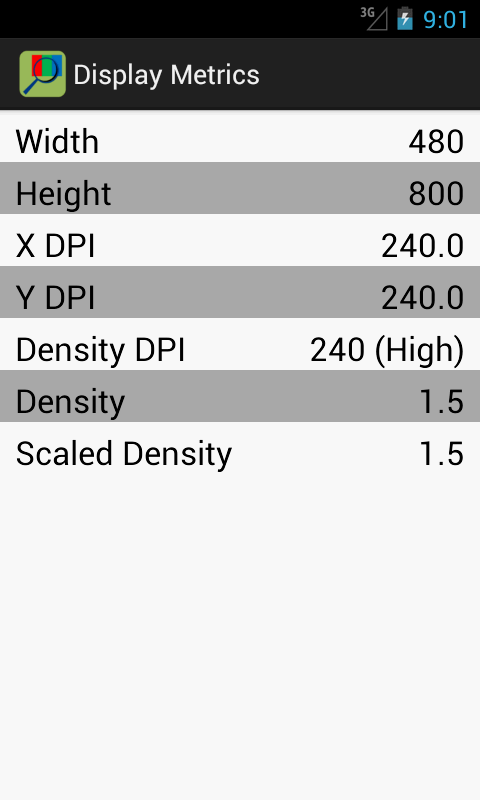 It can also show a list of display metrics, which can be used for comparison of display specifications.