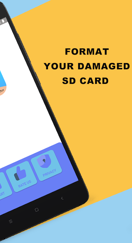 Dengan aplikasi Pemformat Kad Memori SD Mudah, pantas dan elegan untuk memformat kad sd anda yang rosak dan menyimpan fail dan data penting anda. juga mungkin untuk memulihkan data anda yang hilang.