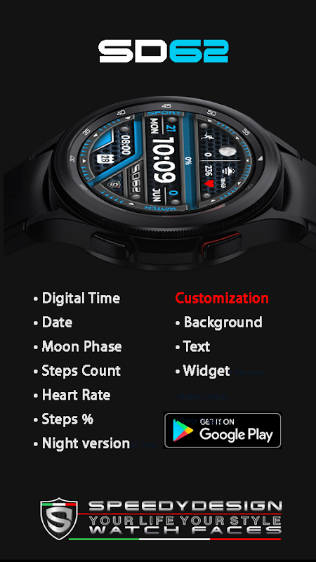 Musim panas, laut dan ombak, ini adalah SD62 yang dicadangkan oleh Speedydesign una Face, yang ingin memantau langkah, bulan, bateri dan banyak lagi, tanpa mengabaikan kesan estetik.