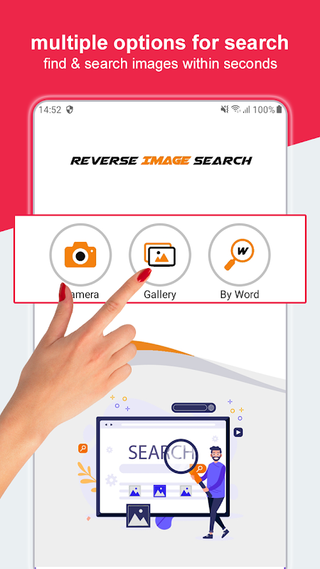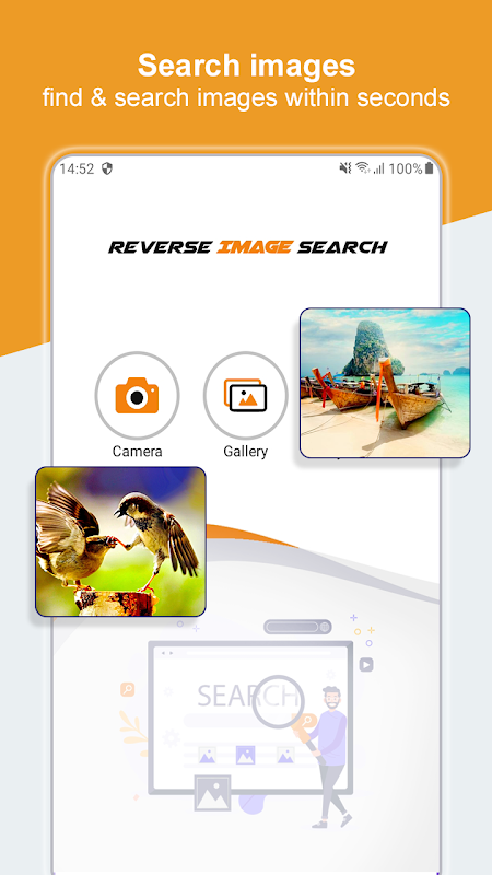 Search by Image - Reverse Image Search Engine digunakan untuk mencari gambar atau foto yang serupa dari internet dengan menggunakan mesin carian terbalik. Anda hanya perlu memuat naik foto atau gambar dari galeri telefon anda atau foto yang diambil dari kamera, setelah foto anda dimuat naik, mesin carian imej terbalik akan mula berfungsi dan kemudian Search by Image - aplikasi Search Image Reverse Image akan mencari foto yang berkaitan di internet. Search by Image - Reverse Image Search Engine adalah aplikasi kamera carian gambar terbalik yang bermaksud anda juga boleh memuat naik foto dari kamera dan kemudian mencari gambar atau gambar yang berkaitan di internet.