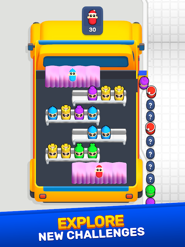 Susun Tempat duduk ialah permainan teka-teki yang menyeronokkan dan menarik! Cuba susun lelaki berwarna di tempat duduk sehingga semua warna berada dalam barisan tempat duduk yang sama. Permainan yang mencabar lagi santai untuk melatih otak anda!