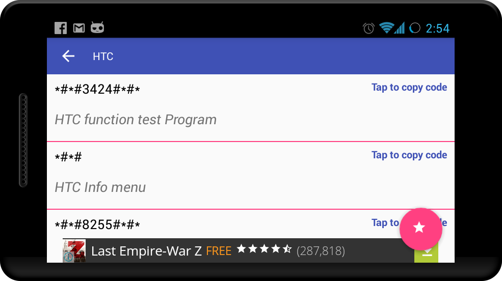 By using this application you can unravel the secret world of your Android Device.This application contains all the secret codes for you and when those codes are typed manually from the phone dialer or paste from this application, they will unlock a hidden menus with more options and information for your Android device.Now you can explore your device secret features and use them by one finger tap.